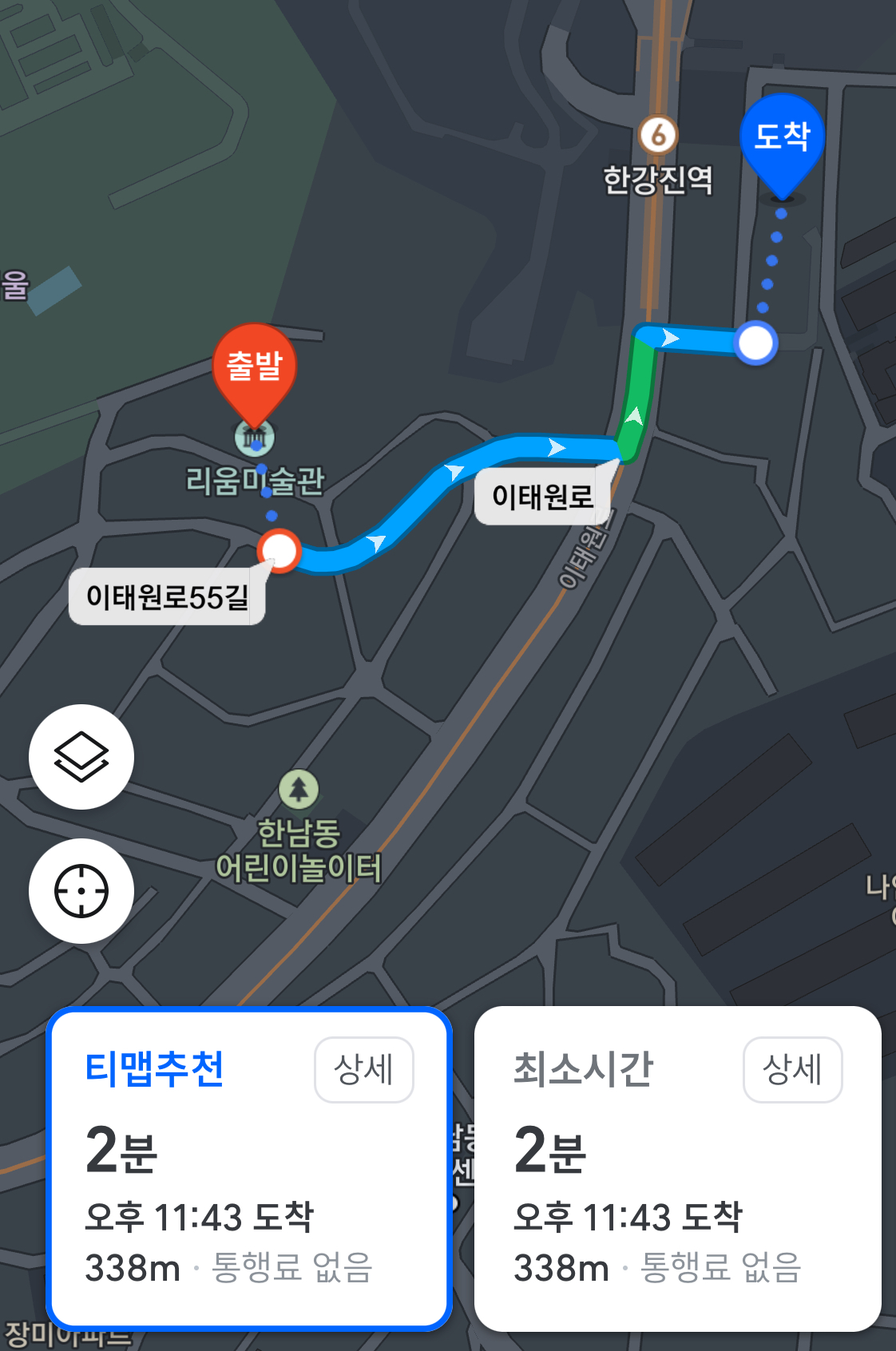 그래서 근처의 한강진역/한남동 공영 주차장으로 안내를 받았습니다. 거리상으로 한강진역이 가깝고 다행히 자리가 남아서 주차하였습니다. 리움 미술관 갈때는 참조하세요